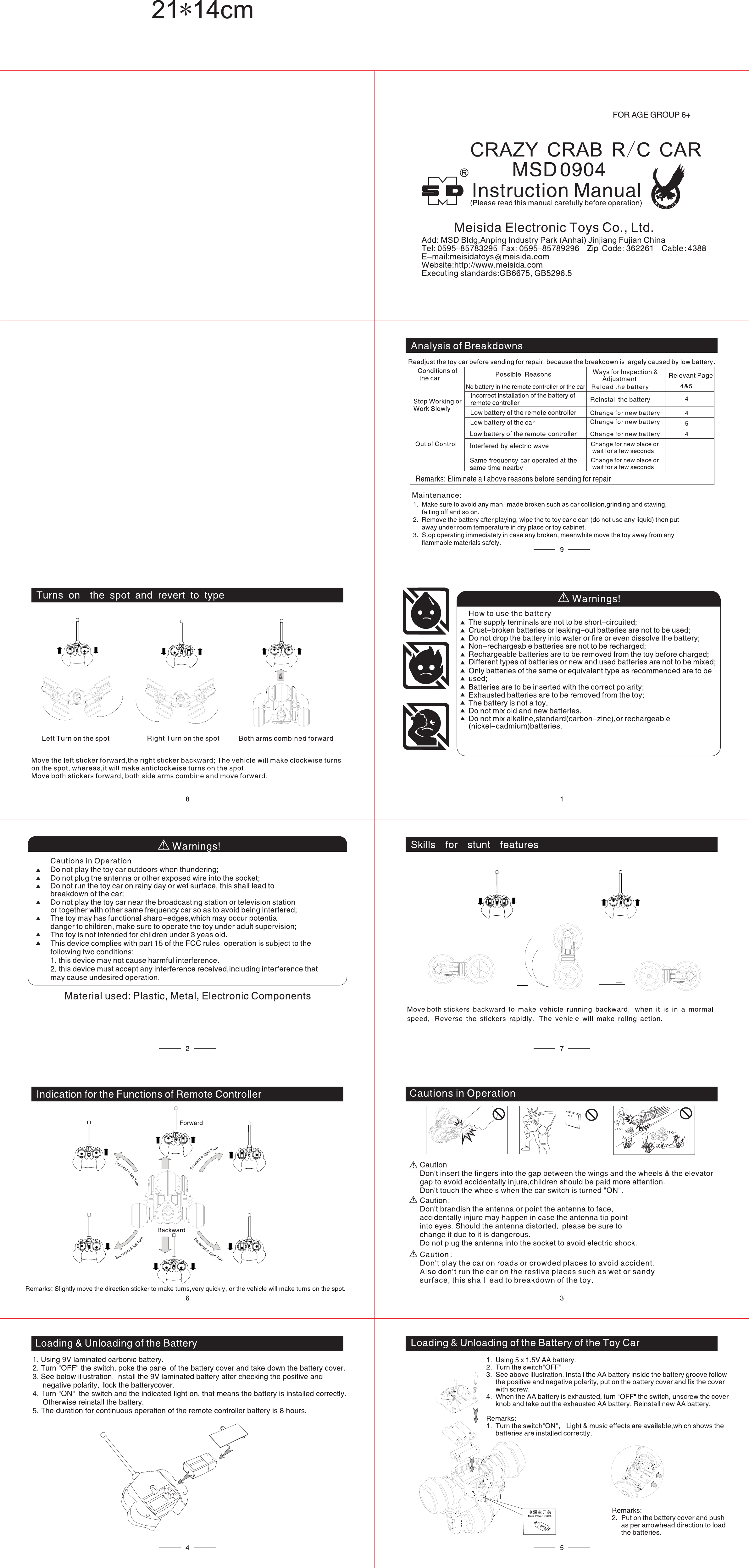 Meisida Electronic Toys Co., Ltd CRAZY CRAB R/C CAR Users Manual