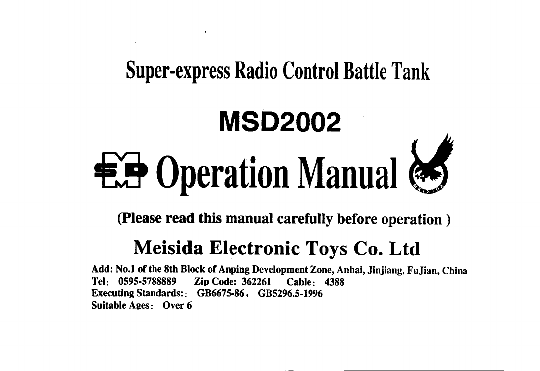 Meisida Electronic Toys MSD20071989 Remote Control Toy Transmitter User Manual 52