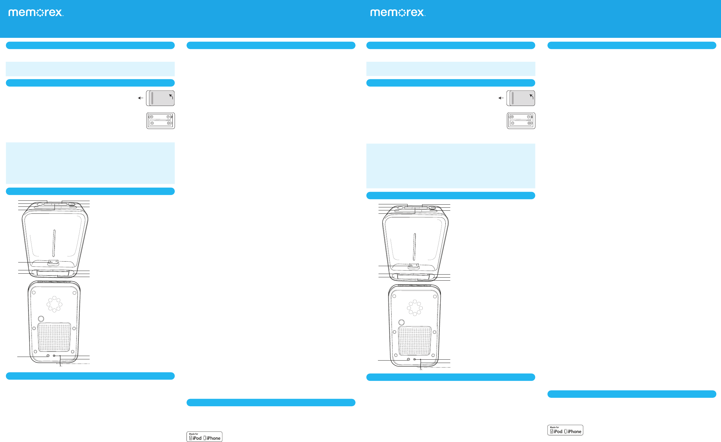 REMARQUE : L'application Memorex Alarm Clock requiert iOS 4,0 ou une version ultérieure.