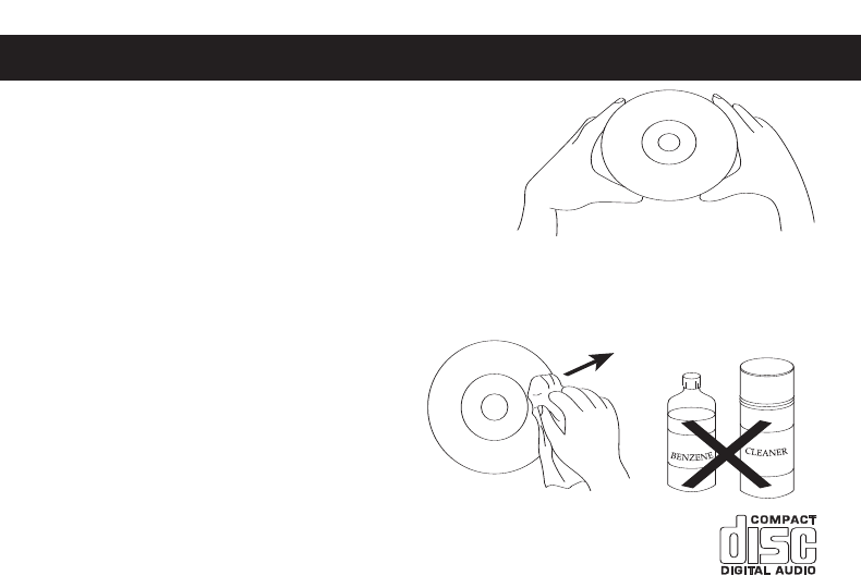 • Clean the compact disc periodically with a soft, lint-free, dry cloth. Never use deter-