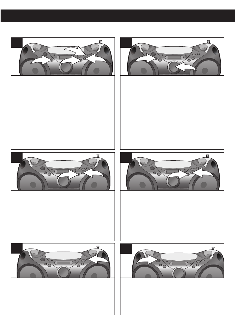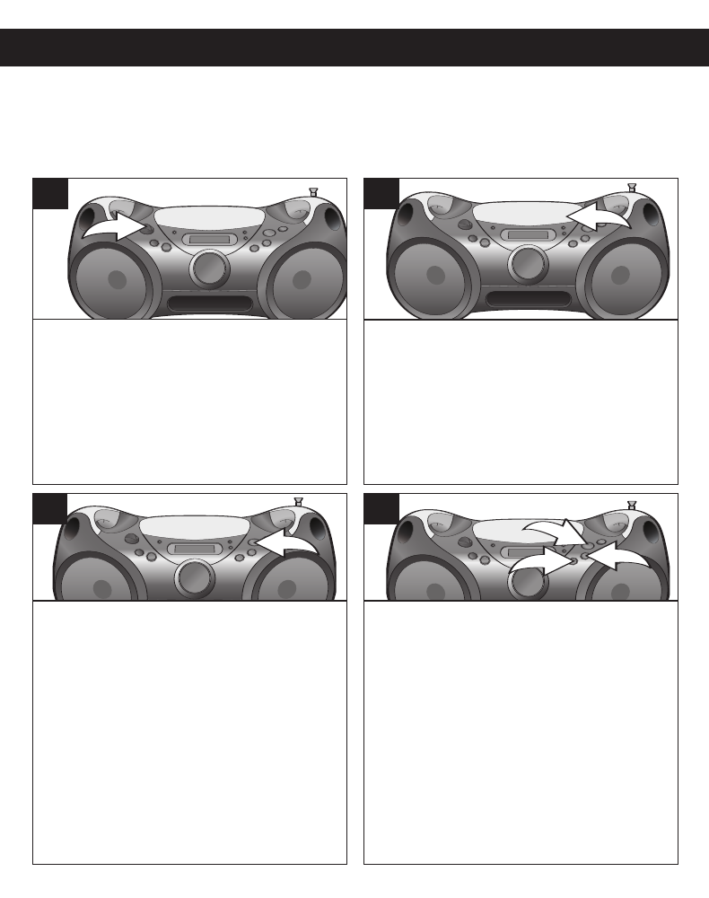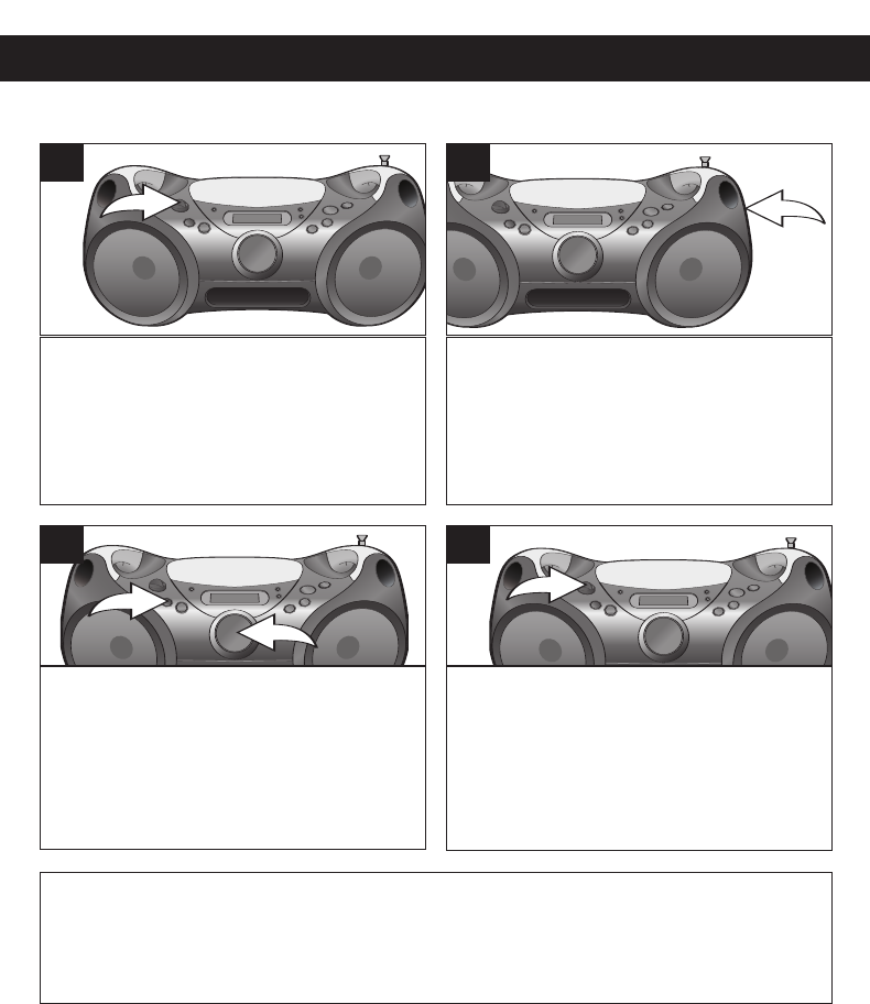AM or FM, no sound. Power is not on. Rotate the FUNCTION