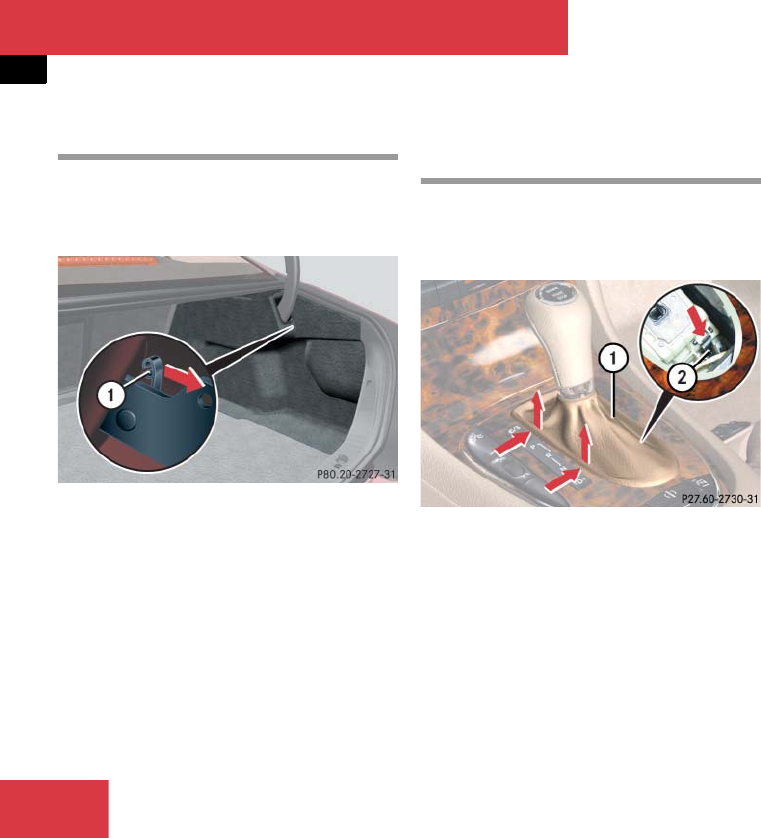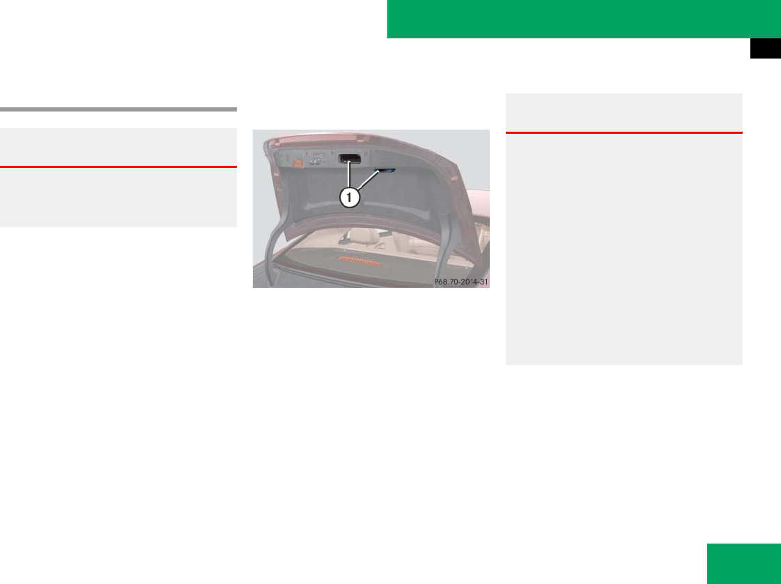 - Trunk:Trunk lid emergency release;Emergency operations:Trunk lid, Releasing from inside
