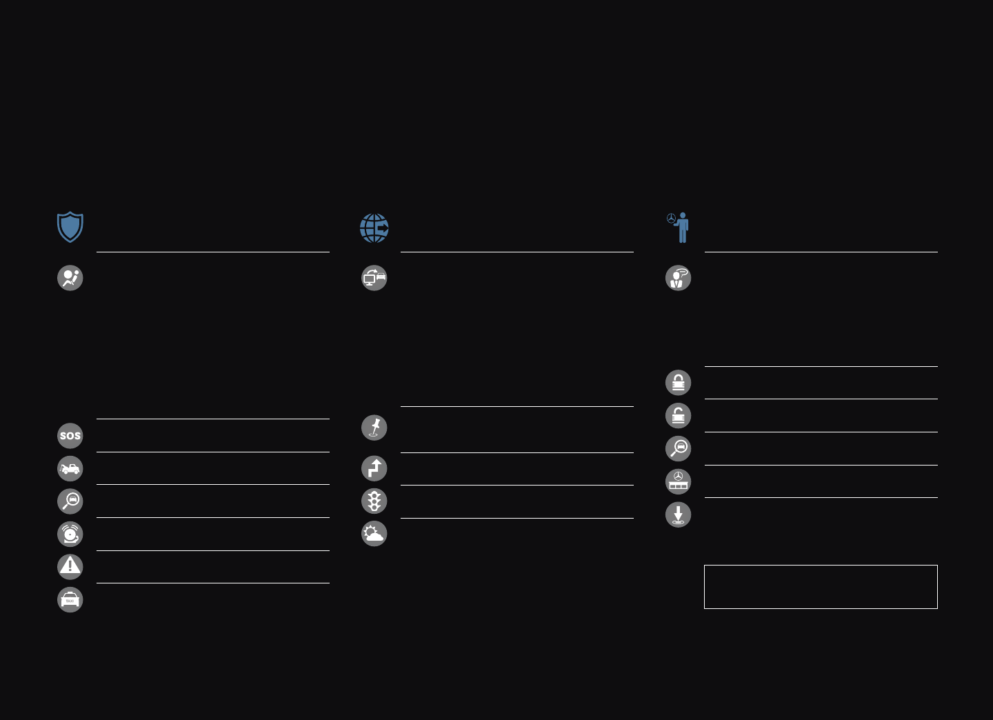 12 All Mercedes‑Benz mbrace™ services operate only where cellular and Global Positioning System signals are available, which are