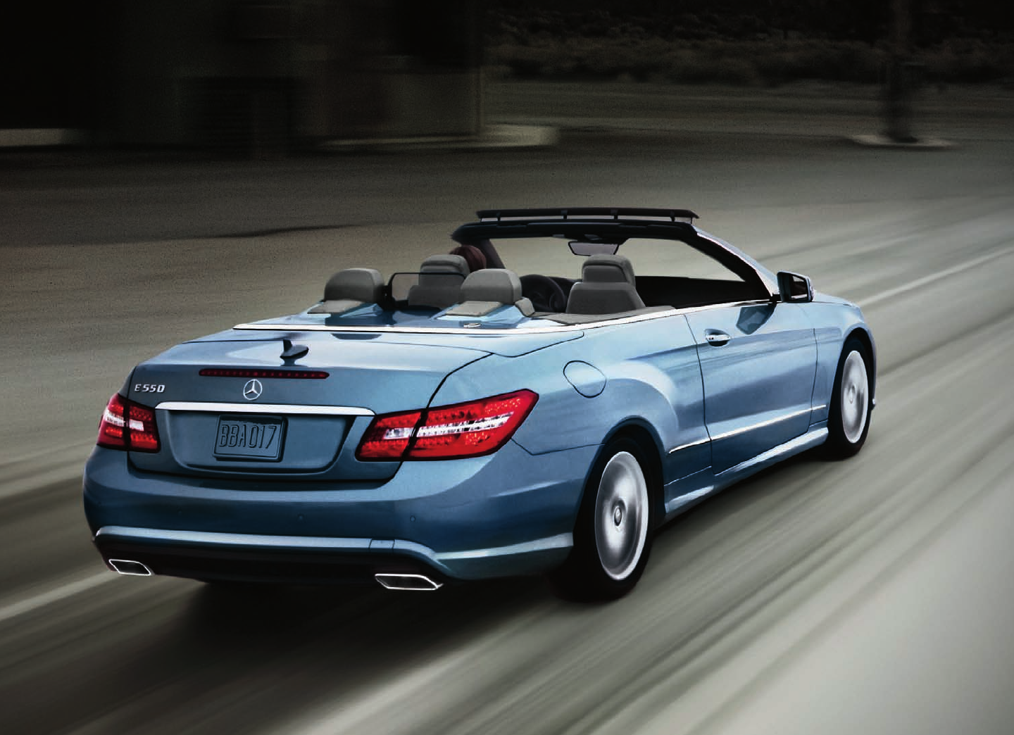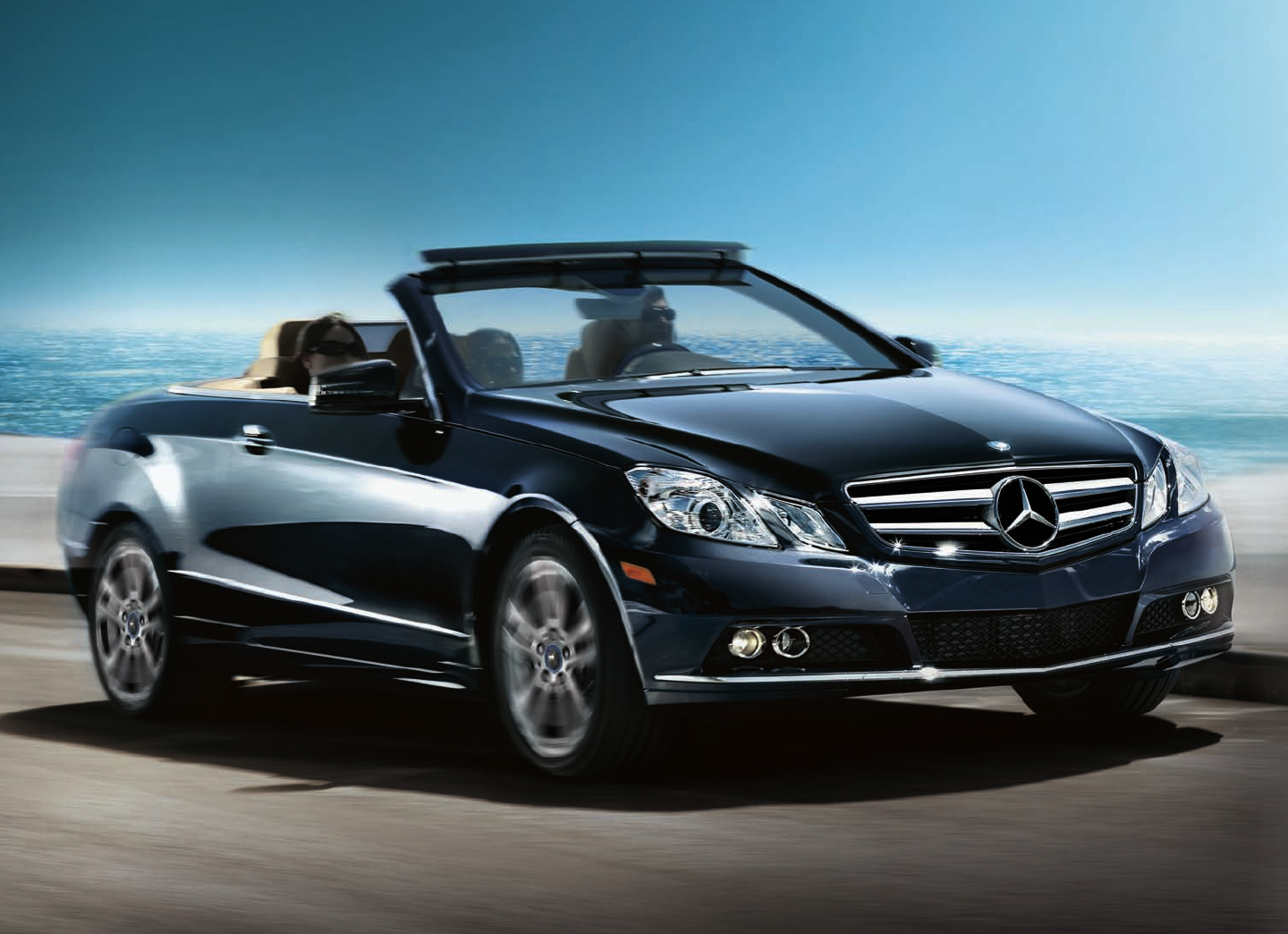 E 350 Cabriolet shown with optional Capri Blue metallic paint, Almond/Mocha leather interior and optional Premium 1 Package.