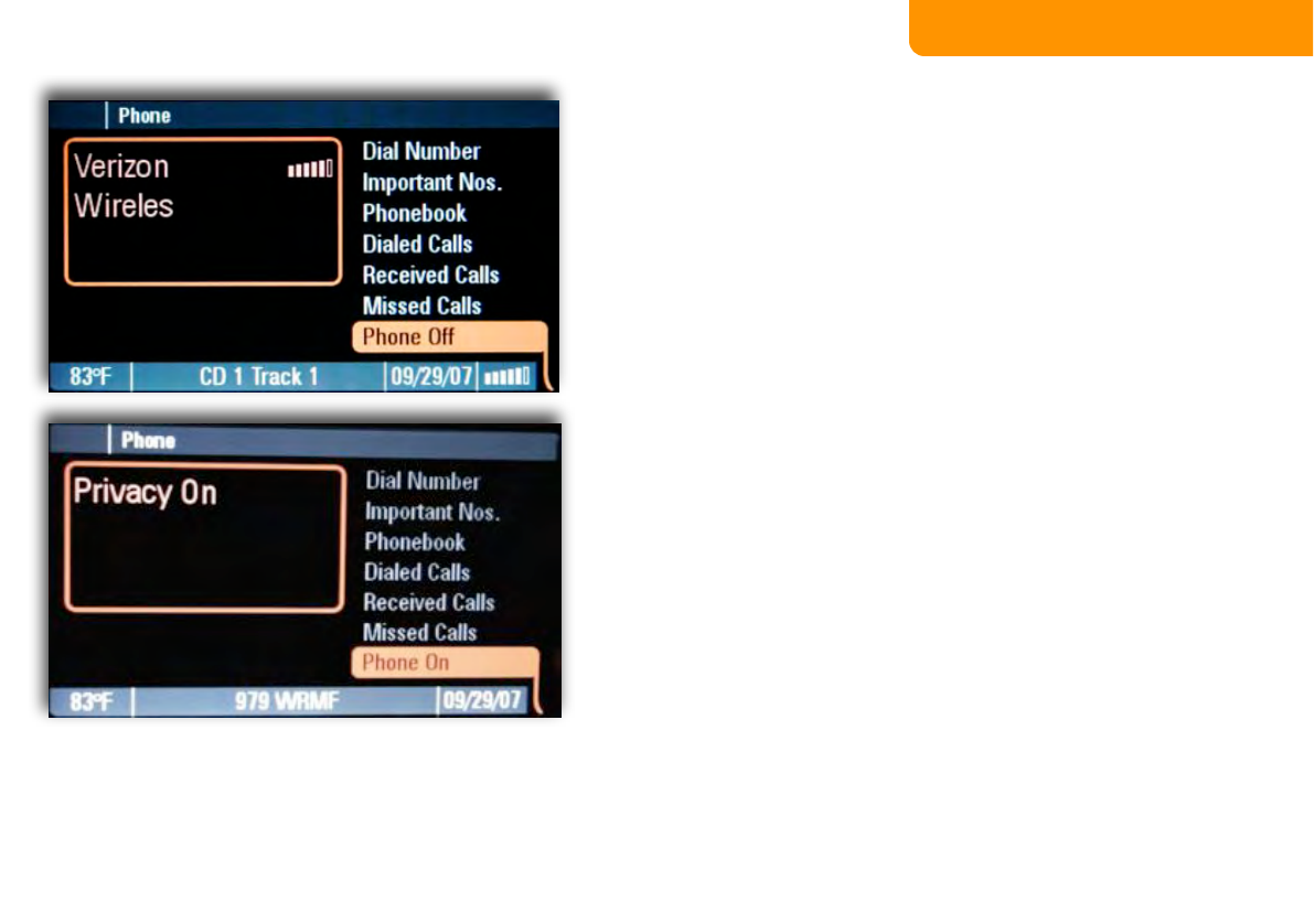 Press TEL, Select Phone Off. Privacy On is displayed,