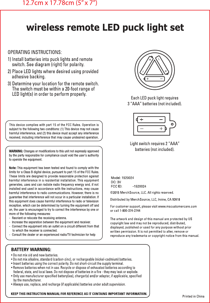 MerchSource 1520024 Light 4pk puck with Remote User Manual 5 20 140BC9A 1