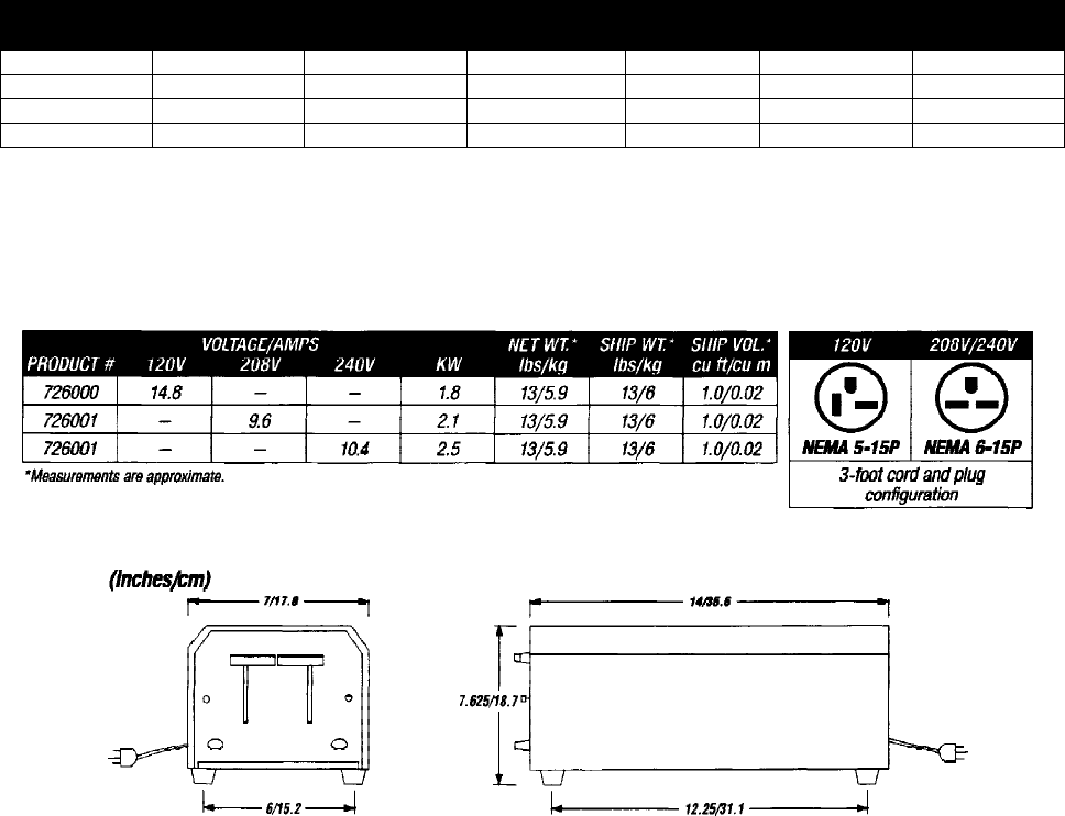 208 9.1 1.9 50/60 13' NEMA 6-15P