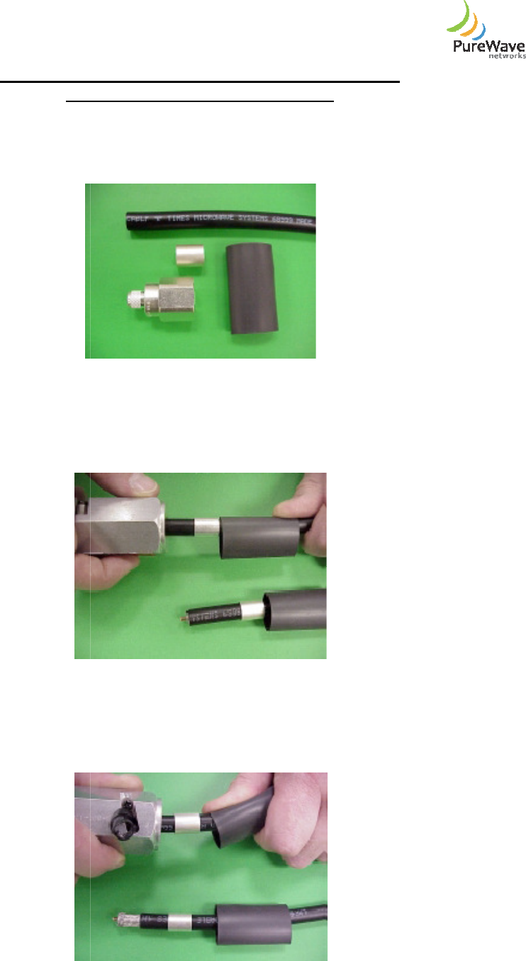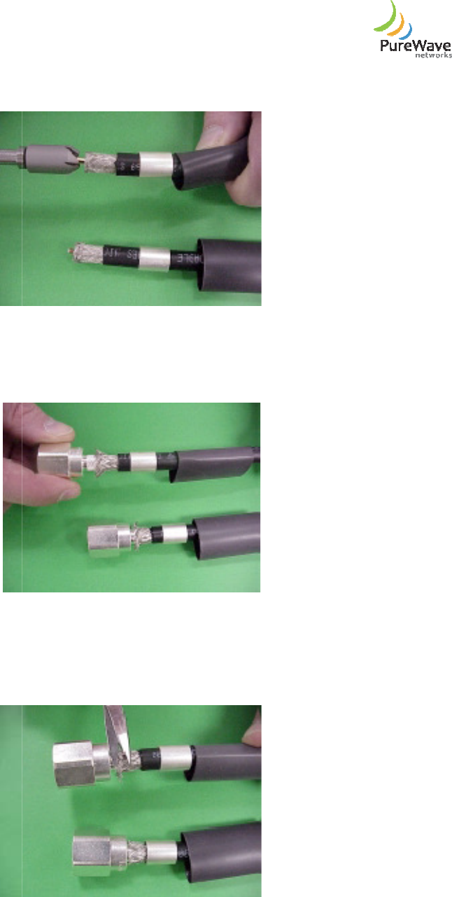 Flare the braid slightly and push the connector body onto the cable until the connector snaps into