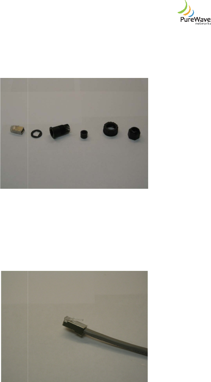 Please remember to install all the pieces of the connector onto the cable before the RJ45
