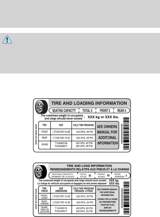 - INFORMATION CONTAINED ON THE TIRE SIDEWALL