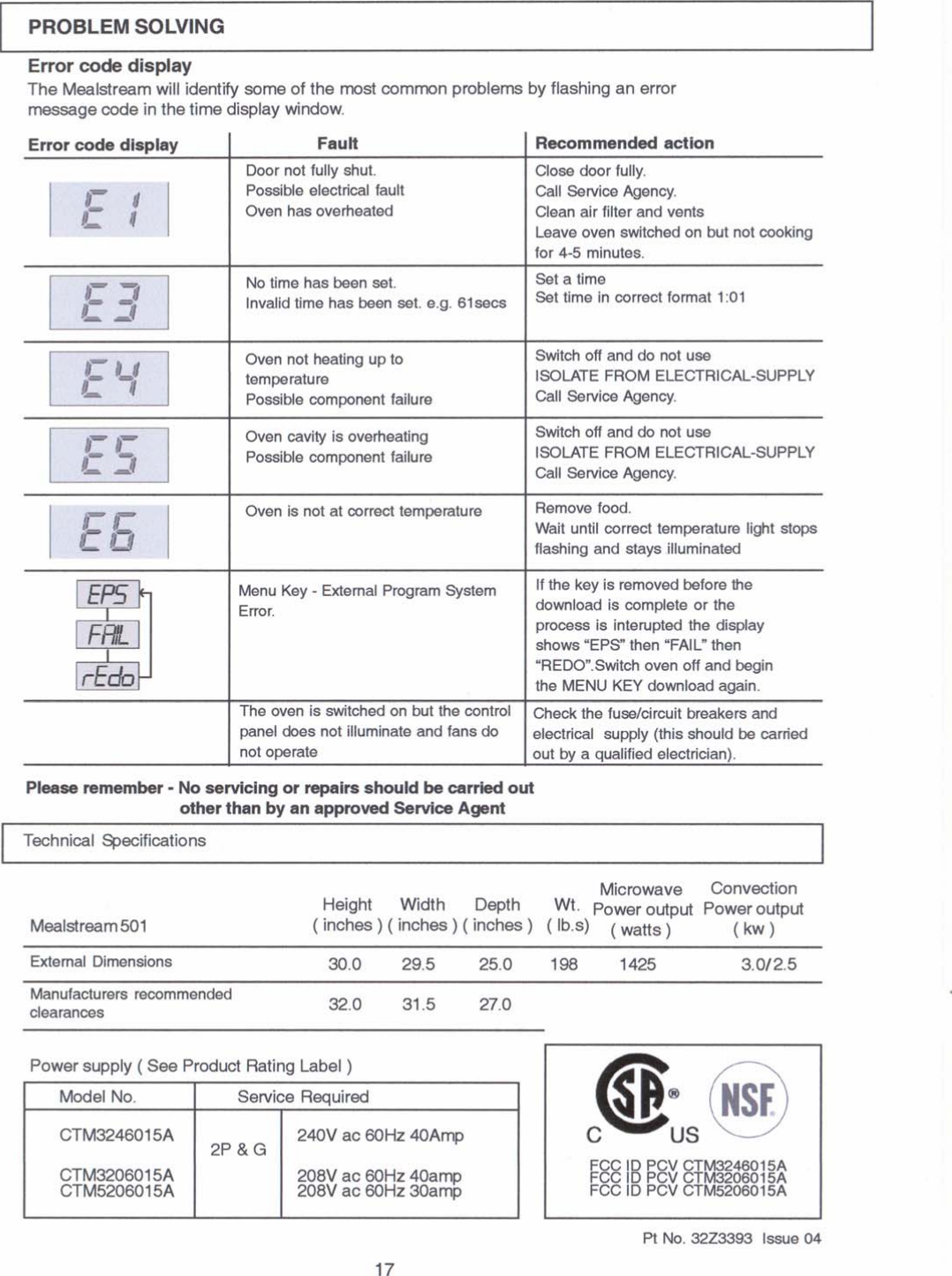 Merrychef CTM5206015A Microwave Oven User Manual Mealstream501NA 32Z3393 Issue3