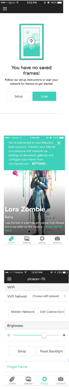 (found by swiping DOWN at any point when the Meural Canvas is at rest).