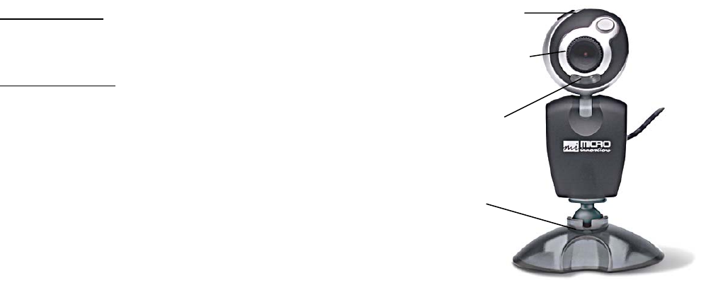 • Never disassemble or touch the inside of the webcam. Only Micro Innovations may service or repair this device.
