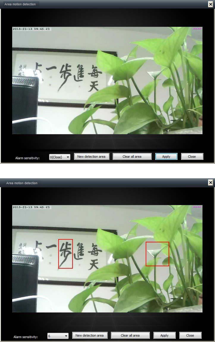 Setmotiondetectionarea:pleaseforwardtochapter3.2alarmsettingfordetails.