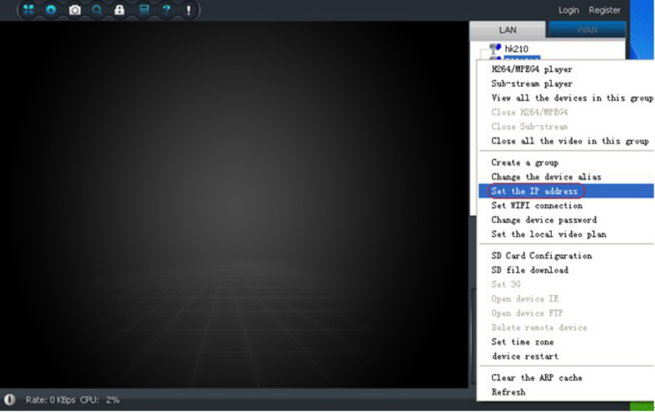 ClickontherightlistareainthemainLAN(seeFigure1),ifthelistareaofthecameranode,selecttheblankareatoclick