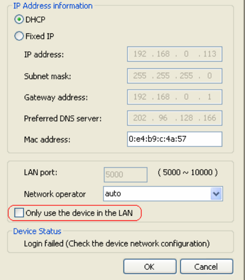 Right‐clickthedeviceselectionissetintheLANIPaddress,asshownbelowcircledinredatselectonlyusethedevicein