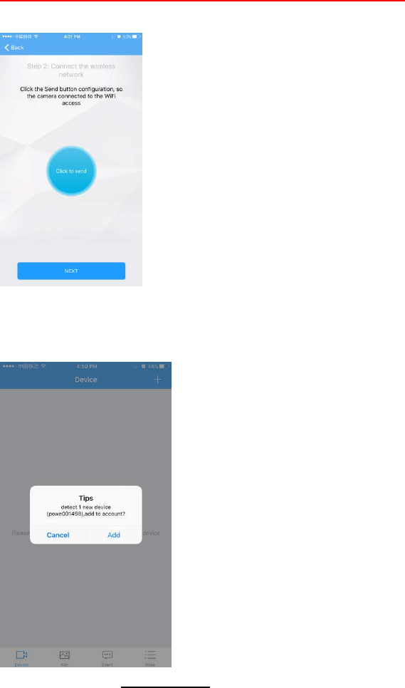 1.as follow page:the voice broadcast mentioned:connectsuccess,and stop to search then Click “Next” Step.