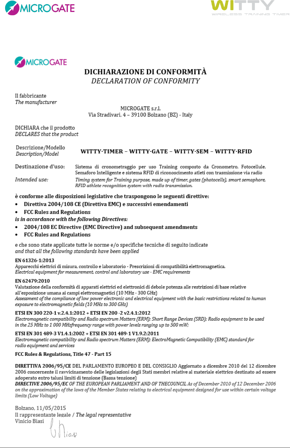 Microgate, REI2, RaceTime2, and MiSpeaker are registered trademarks belonging to Microgate S.r.l.