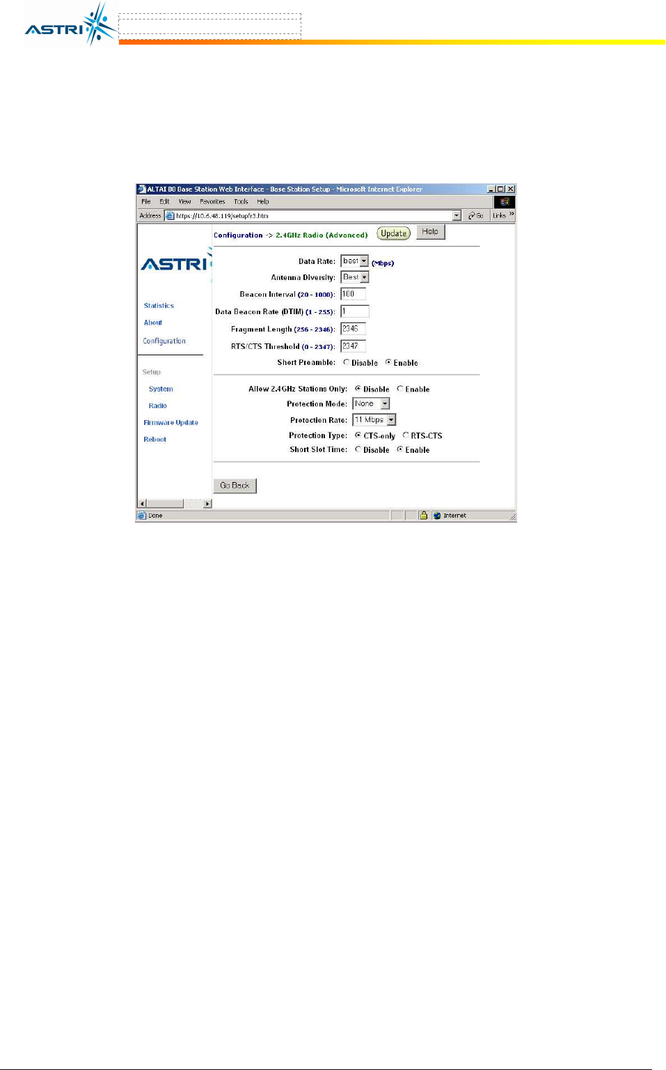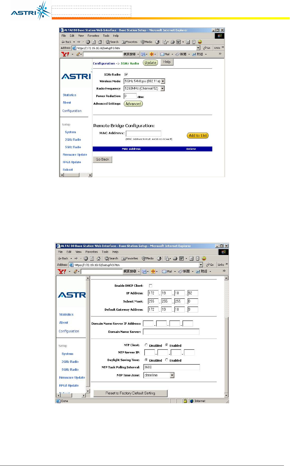The user can enable the 802.11a port by selecting 5GHz Radio in menu bar, in Figure 22.