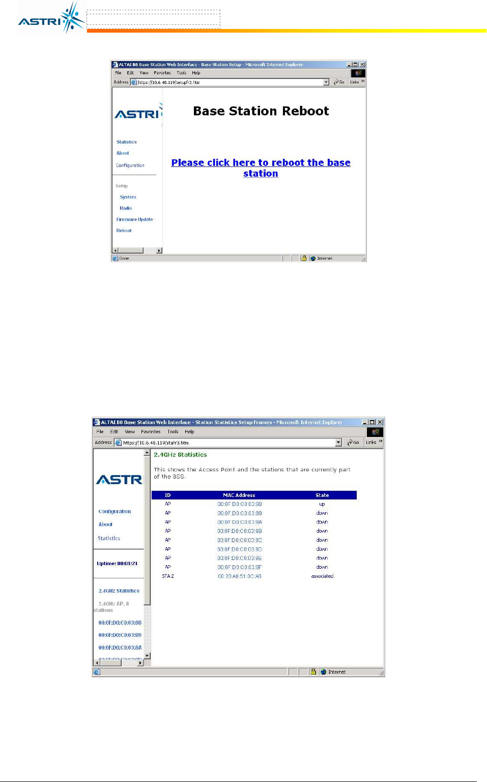 this command by clicking “Please click here to reboot the base station”, as shown in Figure