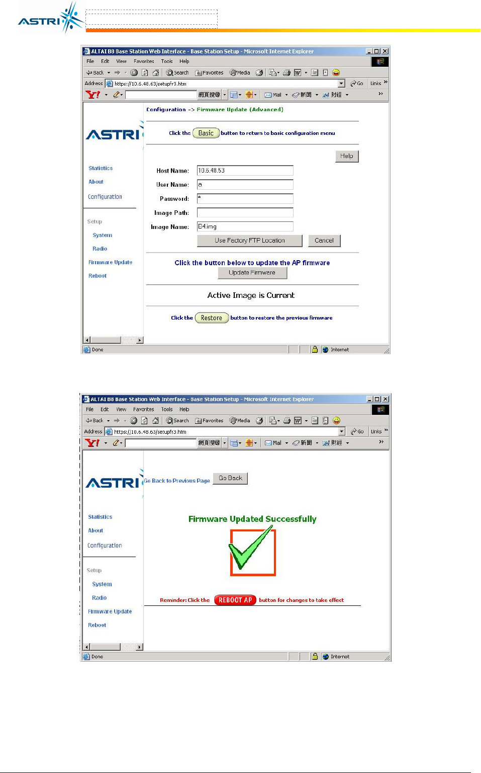 1. Store the new firmware image in the FTP Server. The name of the new firmware should