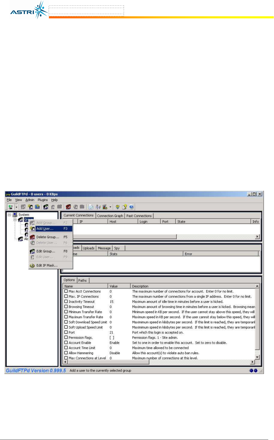 This section will show how to configure a user account in the FTP server software. GuildFTPd