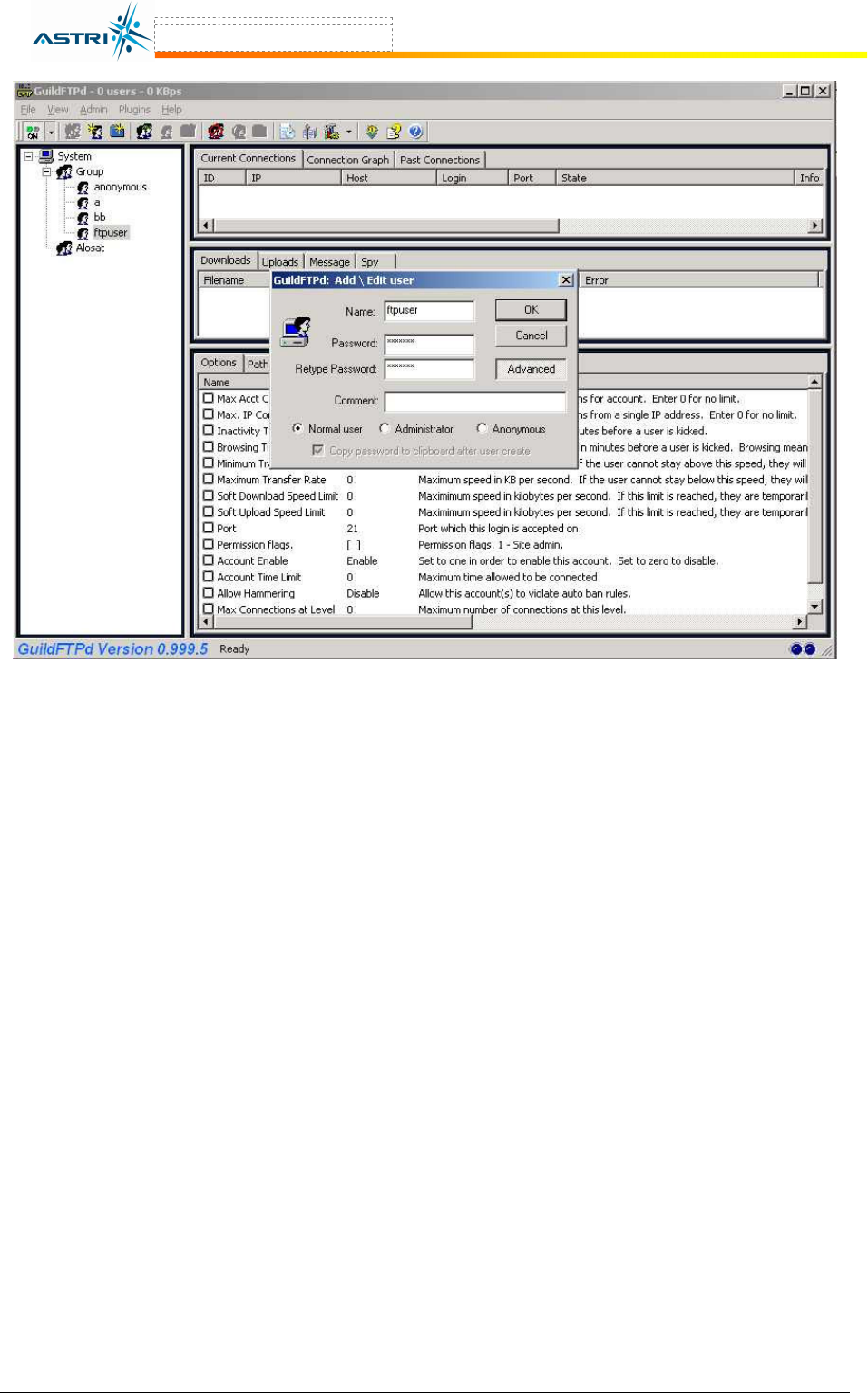 2. Create a user in the FTP server. Please refer to section 10 if you are not familiar with