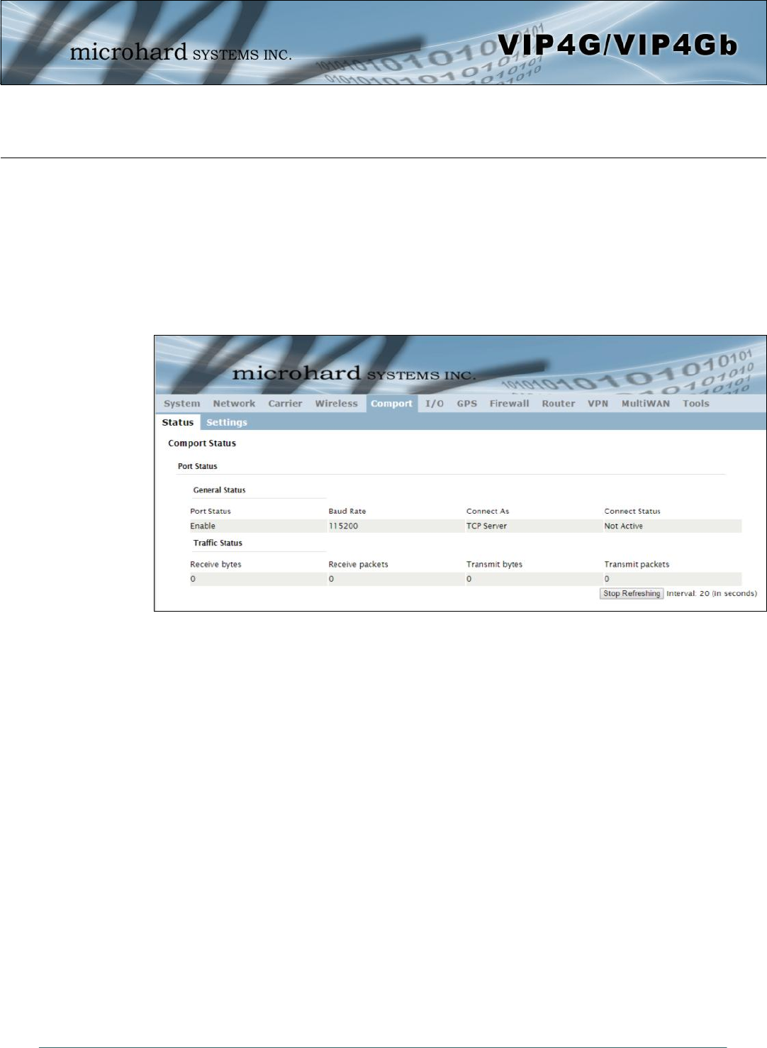 the TCP Client. Once the session is established, the serial port data is communicated from