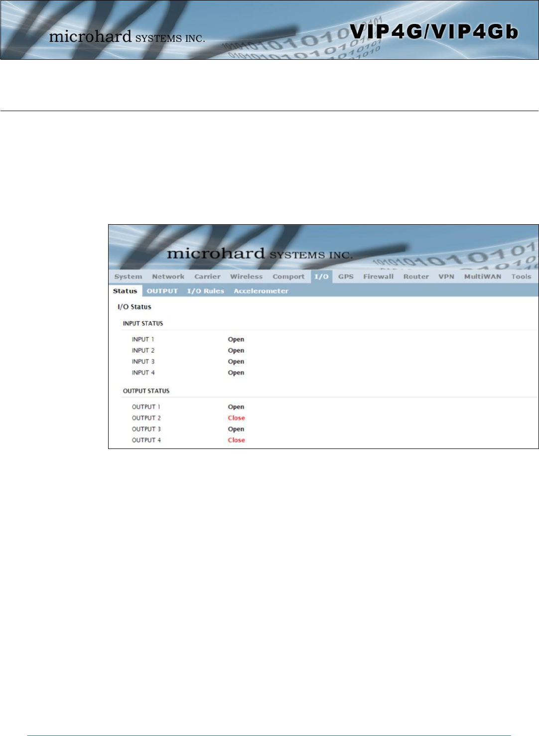 The WebUI will display the current state of each input. The I/O pins are all normally open so an open status