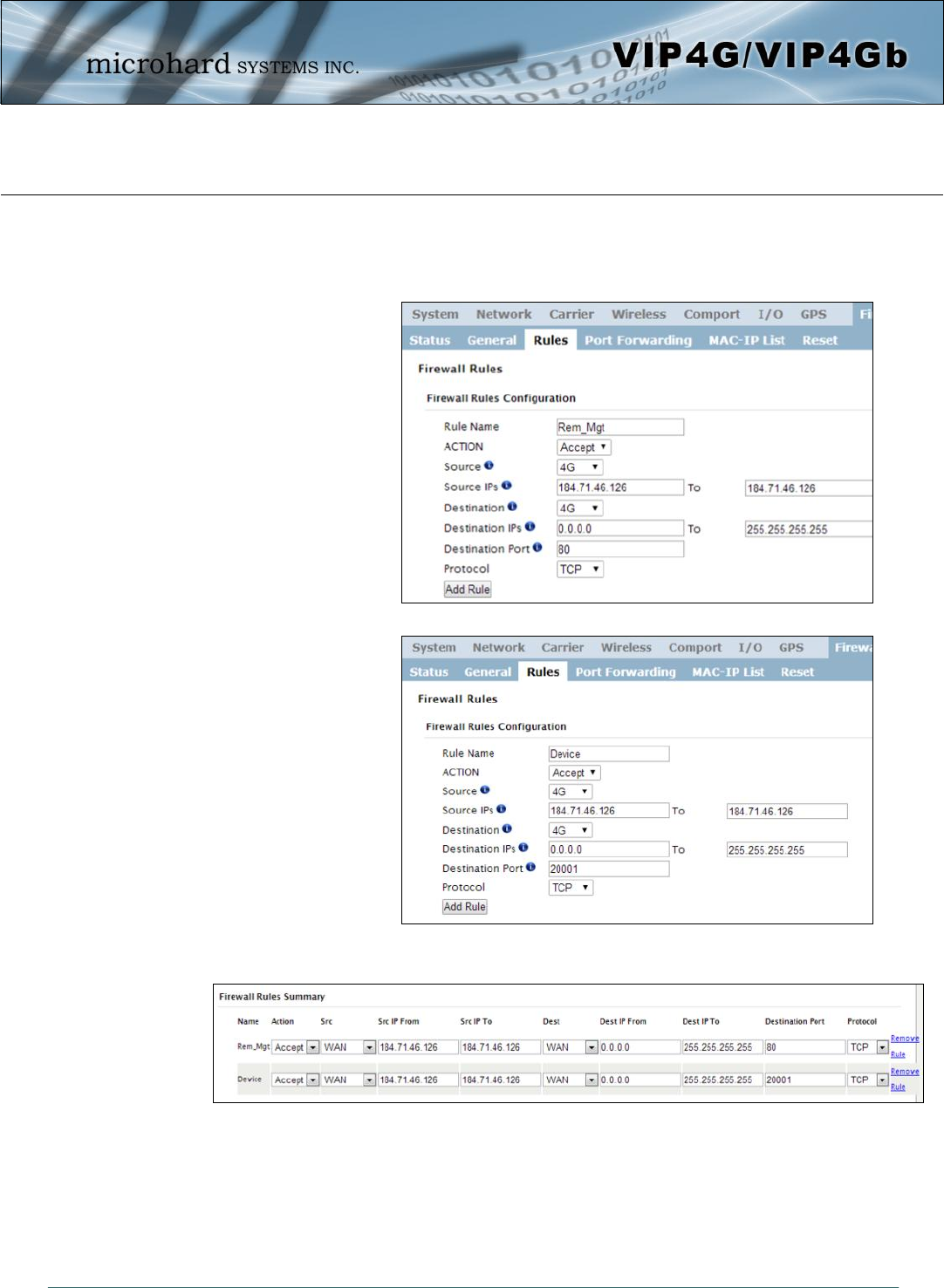 enabled. If the WAN/4G request is blocked (recommended), additional rules will need to be