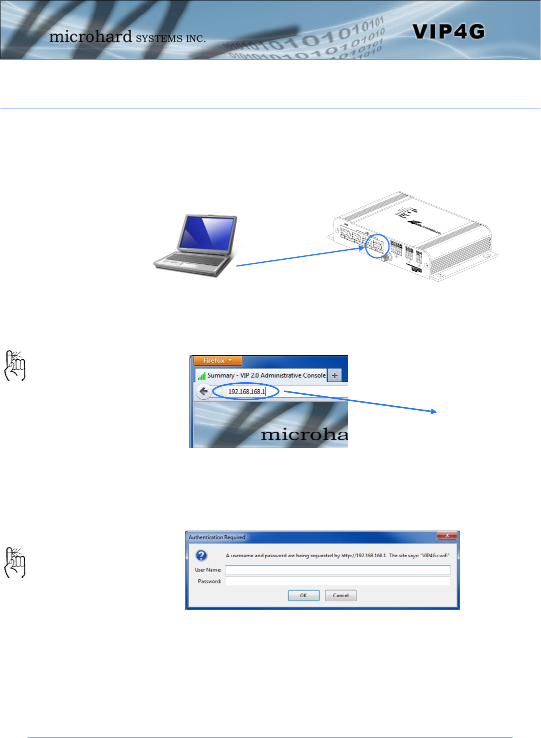of the VIP4G, using an Ethernet Cable. If the PC is configured for DHCP it will