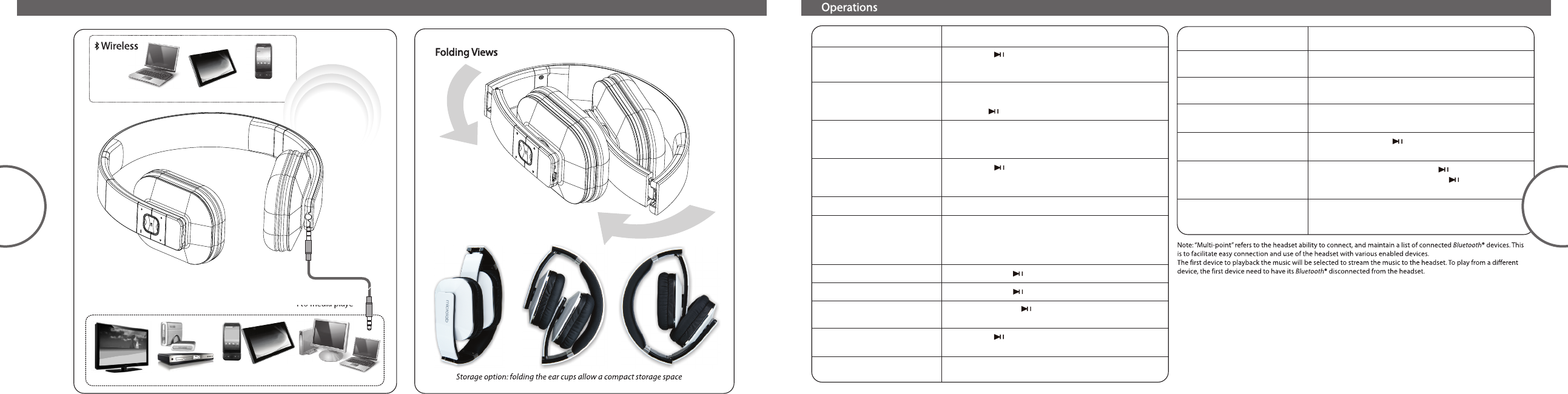 Multi-point connection In pairing mode, depress once the “ “ to enable the