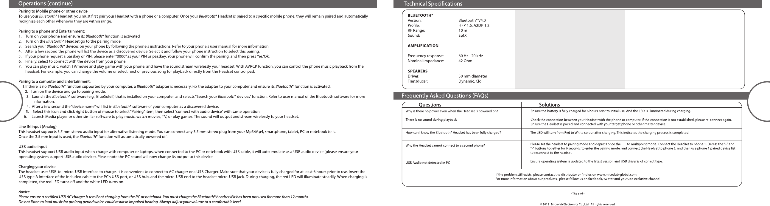 Microlab Electronics T1 Bluetooth Headphone User Manual 80 T1 97 0001 03x4