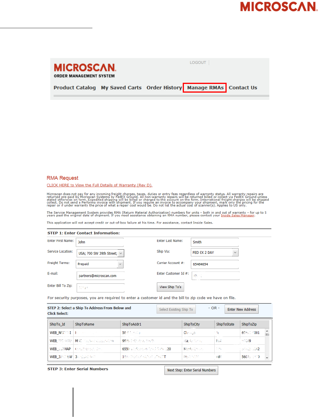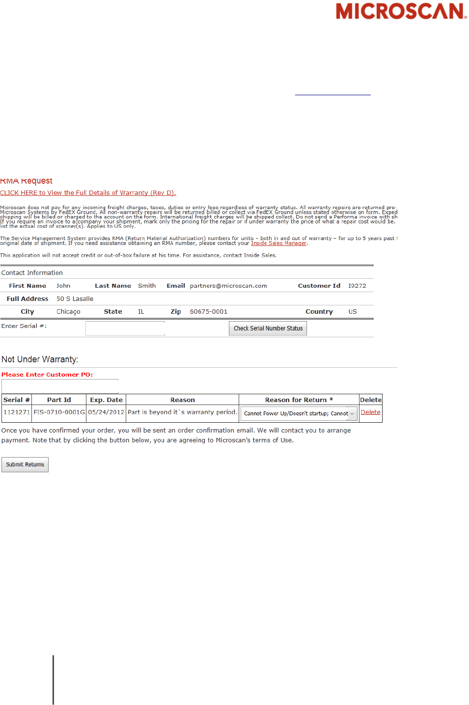 warranty repairs. New RMA requests may be fulfilled at any of Microscan’s service locations worldwide. The electronic