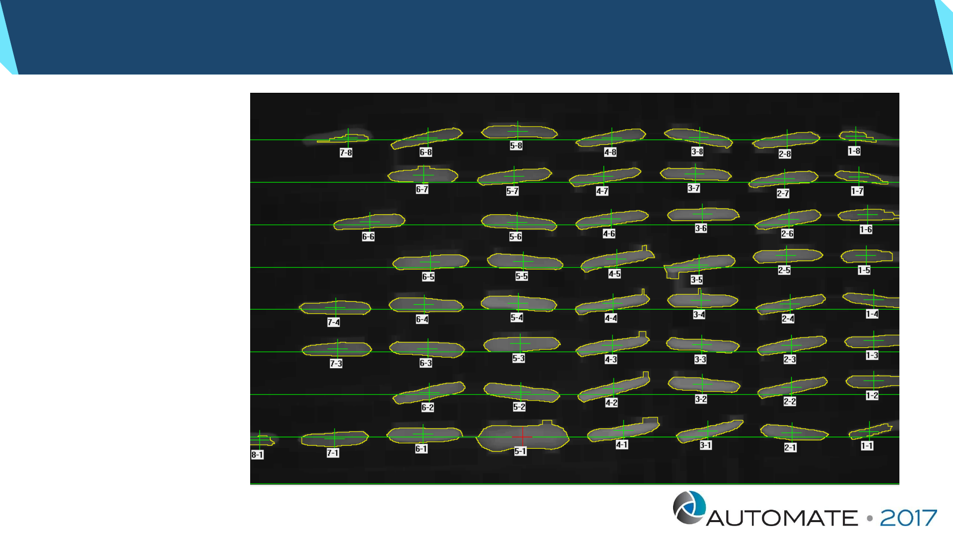 • Employ Strobe lighting to freeze motion as robot “flies” part over camera
