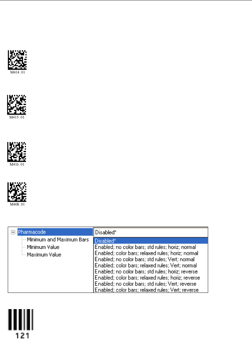 Codabar, MSI Plessey, Codablock F, Pharmacode,