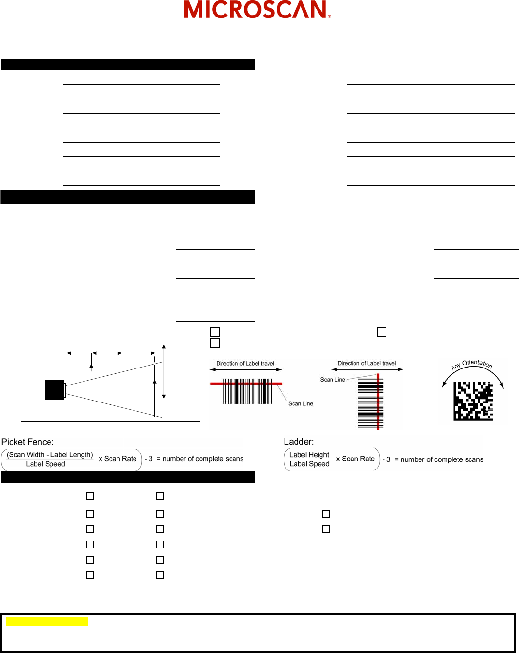 3. Distance to bar code: - - - - - - - - - at distance of (inches): - - - - - -