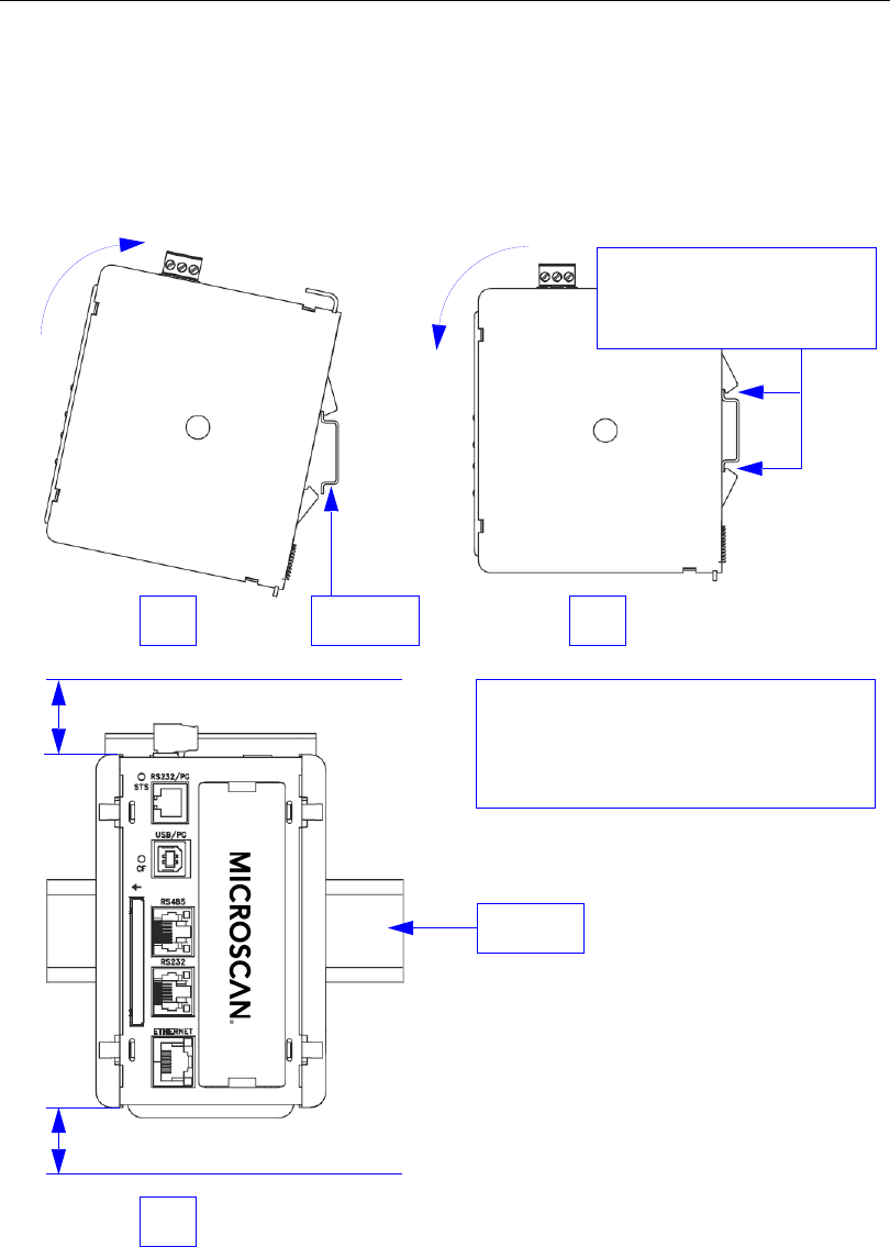 Attach the MS-Connect 5100 to the DIN rail as shown below.