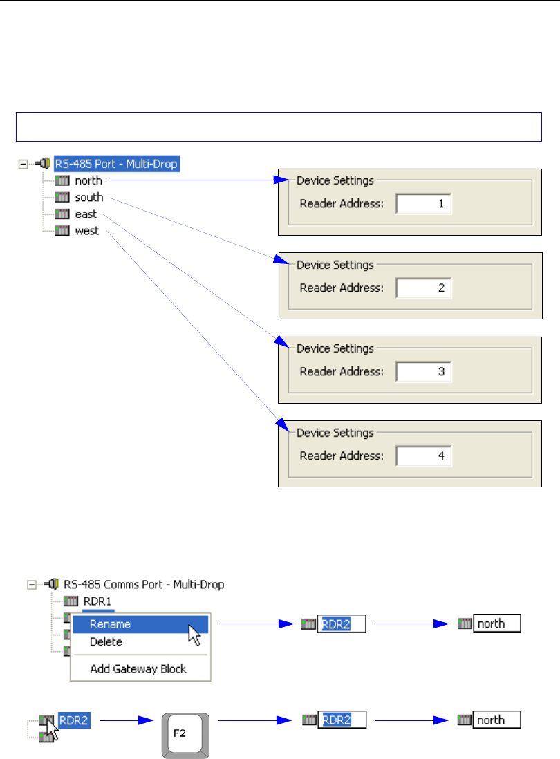 Each reader must be assigned its own Multidrop address when it is added to the network.