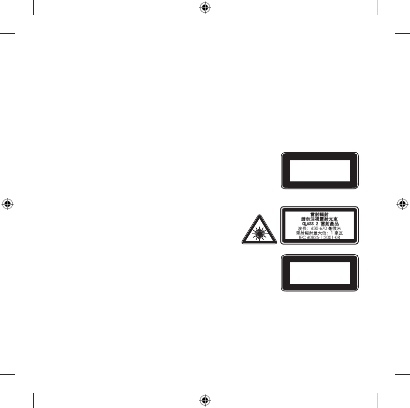อุปกรณ์นี้สอดคล้องกับมาตรฐานระหว่างประเทศ IEC 60825-1:2001-08 สำหรับผลิตภัณฑ์เลเซอร์ Class 1 และ Class 2