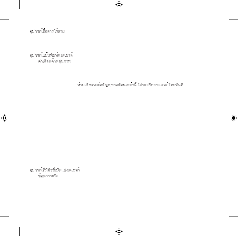 ไม่ให้ใช้กับเครื่องจักร ในการแพทย์ หรือในอุตสาหกรรม การเปลี่ยนแปลงหรือดัดแปลงใด ๆ ที่ไม่ได้รับการรับรองอย่าง