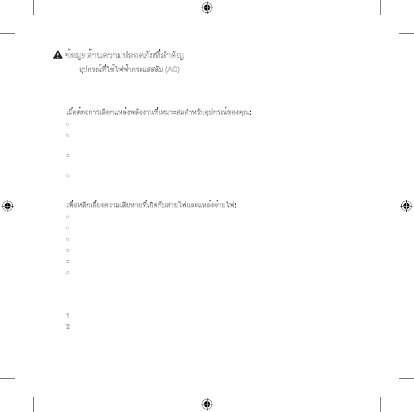 ● Do not overload your wall outlet, extension cord, power strip, or other electrical receptacle. Conrm