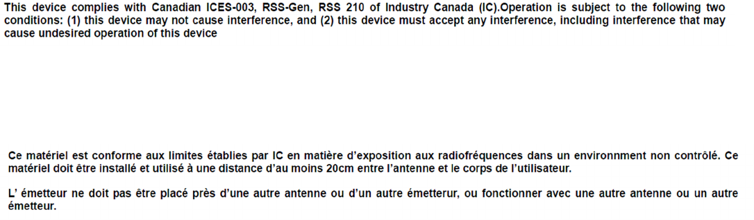 To comply with IC RF exposure compliance requirements, the antenna used for this transmitter must be installed to provide a