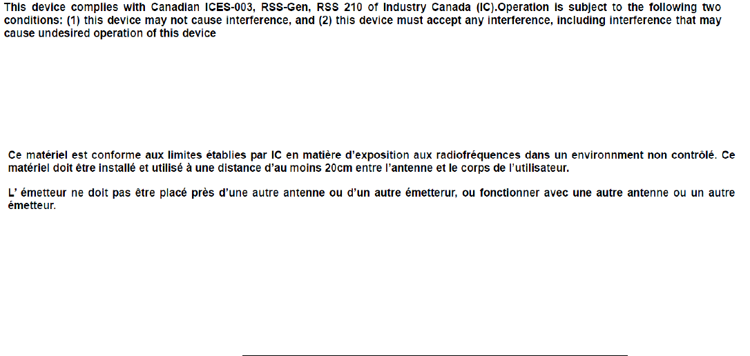 To comply with IC RF exposure compliance requirements, the antenna used for this transmitter must be installed to provide a
