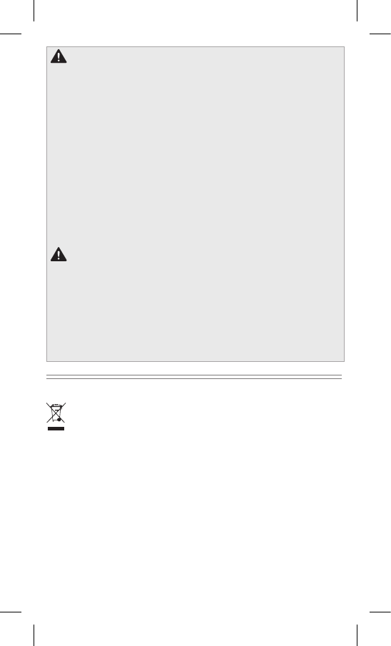 To reduce the risk of re or shock, do not use this device near water and do not expose it to rain