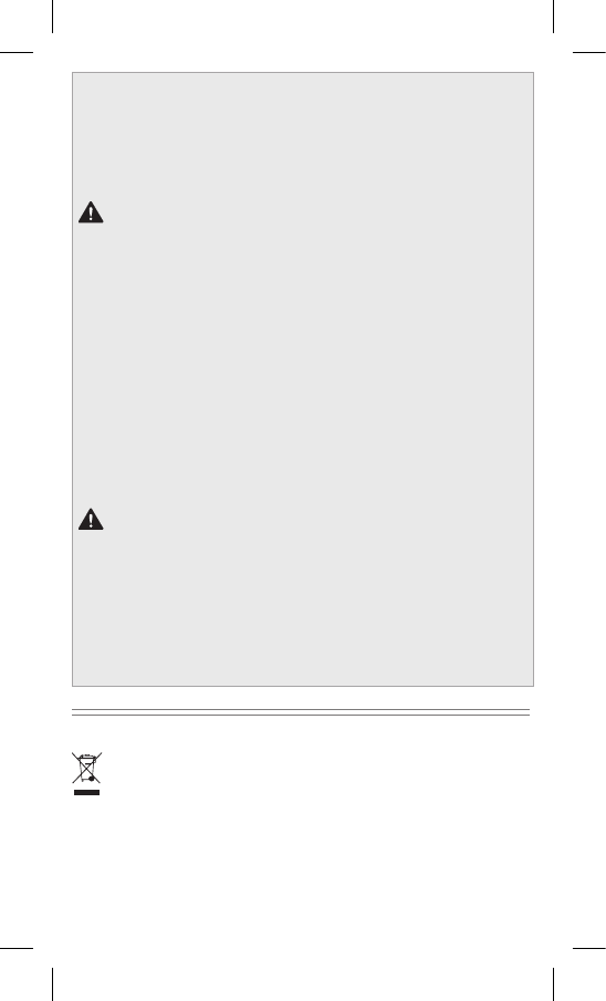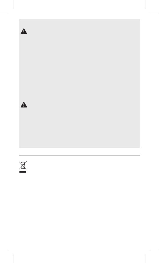 To reduce the risk of re or shock, do not use this device near water and do not expose it to rain