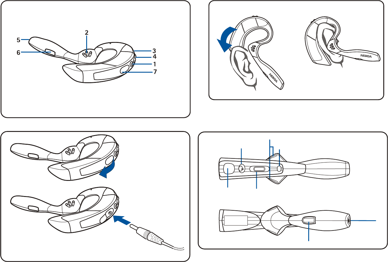 • Do not paint the headset. Paint can clog the moving parts and prevent proper