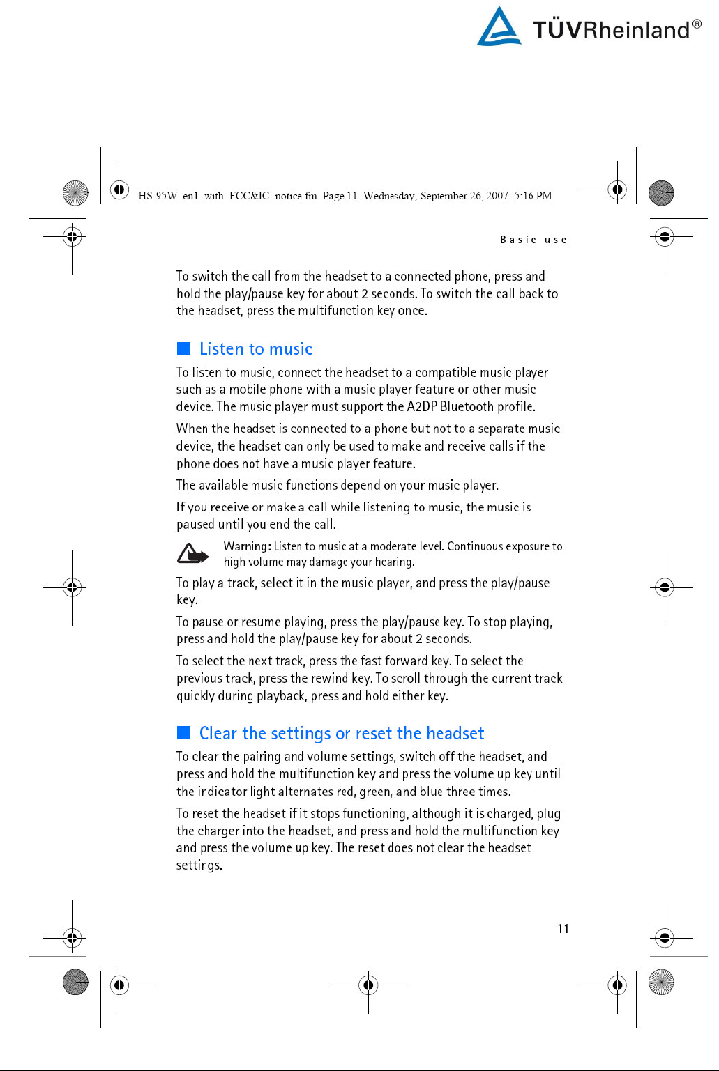 Microsoft HS-95W Bluetooth Headphone User Manual