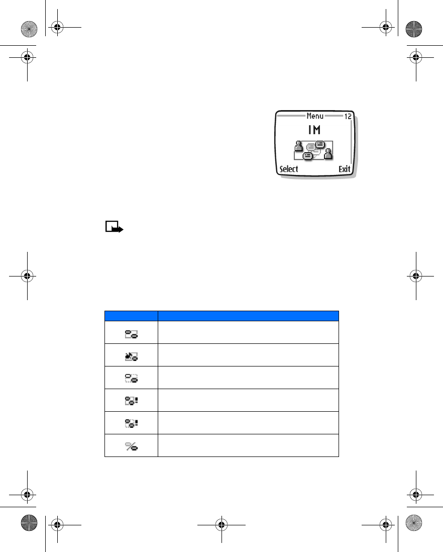 to the IM service. This enables you to receive instant messages from your contacts,