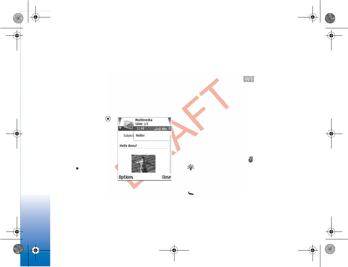 receiving in a text message 76